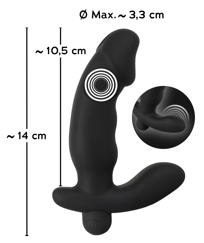 Handlich und leicht aus streichelweichem Silikon und in ergonomischer Passform mit breiter Basis gefertigt, eignet sich der kraftvoll vibrierende Kleine auch für den längeren analen Tragegenuss, z.B. beim Sex.