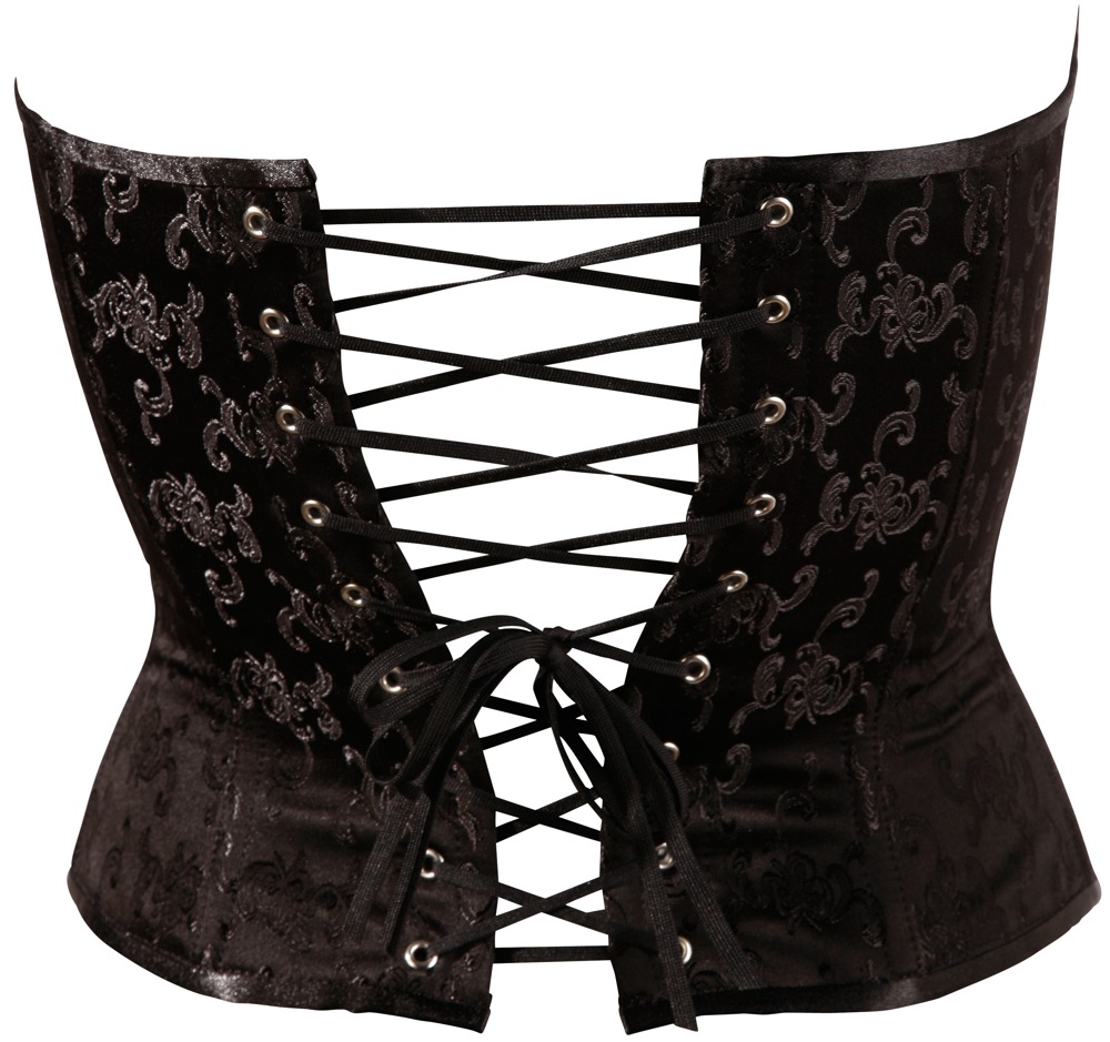 Sinnliche Corsage im edlen Brokat-Look mit figurformenden Stäben und Zierschnürung im Rücken. Inklusive abnehmbarer Strapse.