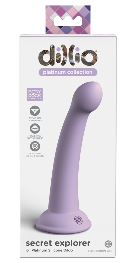 Biegsamer Dildo Secret Explorer von Dillio Platinum im schlicht-schönen, ideal gebogenen Design mit angedeuteter ausgeprägter Eichel. Mit starkem Saugfuß, der auf jeder glatten Oberfläche fest und sicher haftet und somit ein freihändiges Vergnügen ermöglicht. Somit ist der Dildo auch kompatibel mit Strap-ons und Harnessen.