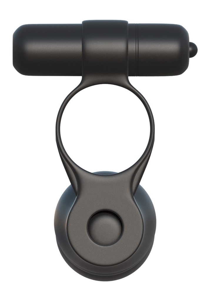 Stramm sitzender Penisring mit einsetzbarem Vibrobullet und fest arretiertem Anal-Kugeldildo. Der Penisring wird übergestreift und schon ist ER mit einem Doppelpenis und einem vibrierenden Klitorisstimulator ausgestattet, um sie dreifach zu beglücken! Der Penisring unterstützt dabei wirkungsvoll seine Erektion dank Blutstau-Effekt. Das kleine, kraftvolle Vibrobullet wird in die obere Schlaufe eingesetzt und sorgt für aufregend prickelnde Zusatzstimulationen – auch unter der Dusche oder in der Badewanne, denn das Vibrobullet ist wasserdicht. Inklusive Batterien (3 x LR44) für das Vibrobullet.