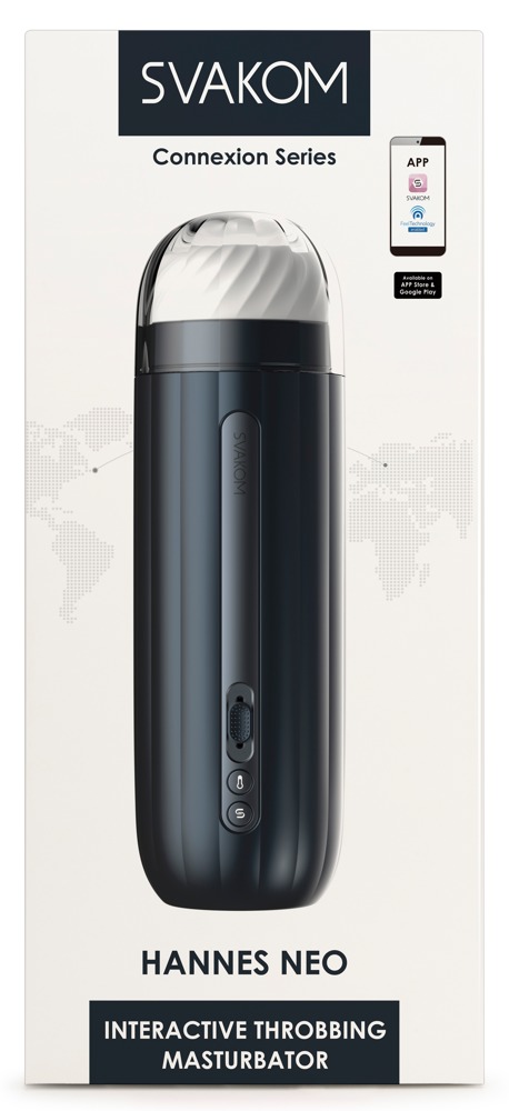 Vollautomatischer pulsierender Masturbator Hannes Neo von SVAKOM mit entnehmbarer reizstrukturierter Sleeve für die intensive Penismassage. Mit tiefgehend pochend-pulsierender Stoßfunktion in 5 Intensitäten und dazu eine Wärmefunktion, die zu einem besonders realistischen Erlebnis beiträgt. Alles bequem steuerbar per Knopfdruck/Schieberegler (stufenlose Geschwindigkeit) direkt am Toy oder per FeelConnect-3-App übers Smartphone mit 3 Hauptfunktionen: Long Distance Control (jederzeit von überall auf der Welt), Verbindung zu interaktiven 2D-Videos und interaktive Webcam-Funktion.
