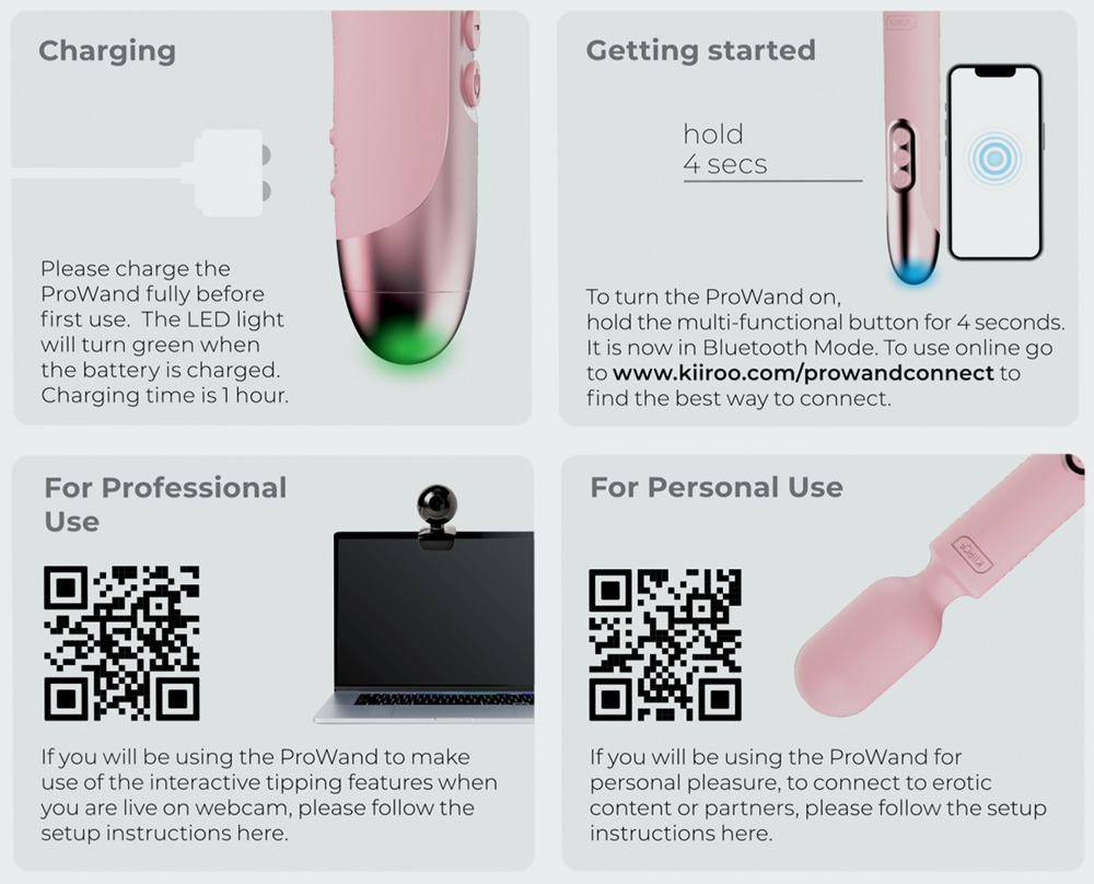 Die ProWand ist mit 6 voreingestellten manuellen Modi ausgestattet, die bequem per Knopfdruck direkt am Toy steuerbar sind. Noch spannender wird es, den ProWand via Bluetooth/WLAN/App für interaktives Vergnügen zu nutzen. Per FeelConnect App sind individuelle Anpassungen von Vibrationen und Licht, Fernspiele und ferngesteuerte Interaktionen mit dem Partner oder der Partnerin möglich. Über FeelPerformer kann man sich mit Webcam-Plattformen in Echtzeit verbinden, um live eigene Intim-Light-Shows zu präsentieren.
