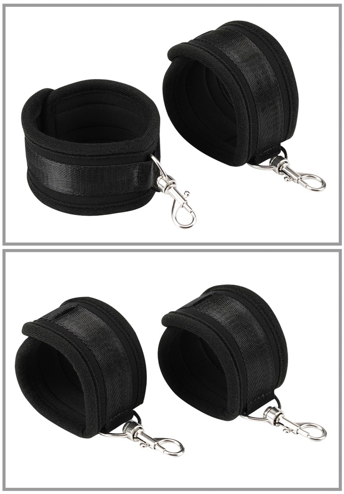 Hand- und Fußfesseln leicht gepolstert und mit Klettverschlüssen schnell an- und abgelegt, sowie passend verstellbar.