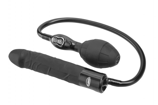 Aufblasbarer vibrierender Penis mit Luftablass und 7 leistungsstarken Funktionen, wasserdicht. Ausdehnung auf das Doppelte der Ursprungsgröße möglich. Hergestellt aus Silikon, TPE und ABS-Plastik. Benötigt 2 AAA Batterien (nicht enthalten). Länge: ca. 15,5cm, Ø ca. 3,3cm. Ausdehnung max. 10cm.